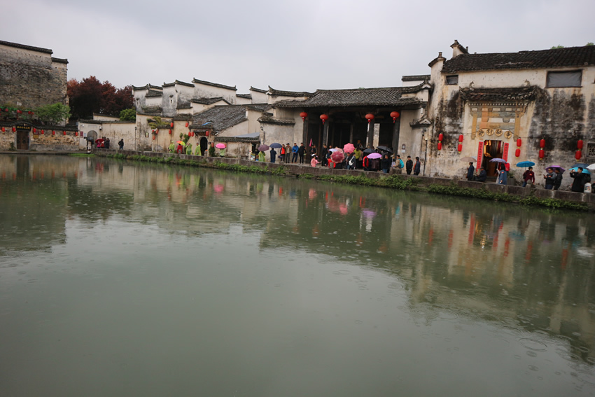 4月中旬,公司為員工組織了三天兩晚的春游活動。第一天上午,我們由武漢站乘動車前往黃山市,下午到達黃山北站后在導游的帶領下乘坐旅游大巴前往第一個目的地:安徽黟縣特色小鎮——宏村。宏村是國家首批12個歷史文化名村之一,是一座仿生學建筑牛形水系的古村落,這里依山傍水,美不勝收。可惜天公不作美,當天的宏村下起了小雨,拍照略有不便,不過,大家穿著雨衣漫步在小鎮里也別有一番風味。我們游覽了南湖畫橋、南湖書院、月沼、樹人堂、敬愛堂、敬修堂等具有濃郁徽州風格的古民宅,河水清澈見底,小巷狹長幽深,都散發出一種安逸靜謐。看著這樣的鄉村景色,恍如步入唐詩宋詞的意境,古代田園詩的許多名句在這里找到了現實的寫照,“無邊細雨濕春泥,隔霧時聞小鳥啼;楊柳含顰桃帶笑,一邊吟過畫橋西”除了美景外,還有許多特色美食,如毛豆腐、蟹殼黃燒餅,在景區里隨處可見。天色漸晚,雨越下越大,匆匆繞到村口便前往住處,一路上看到了很多田園憶古風的“店家,我們入住的聚緣軒客棧內里布置也是古香古色,很新鮮的體驗。晚上,大家吃過晚飯后,又感受了一下宏村的夜景,還逛了一些特色小店。第二天離開宏村時,天氣晴朗,寧靜優美,還有男男女女在村邊作畫,不禁感慨,宏村不愧為畫里鄉村