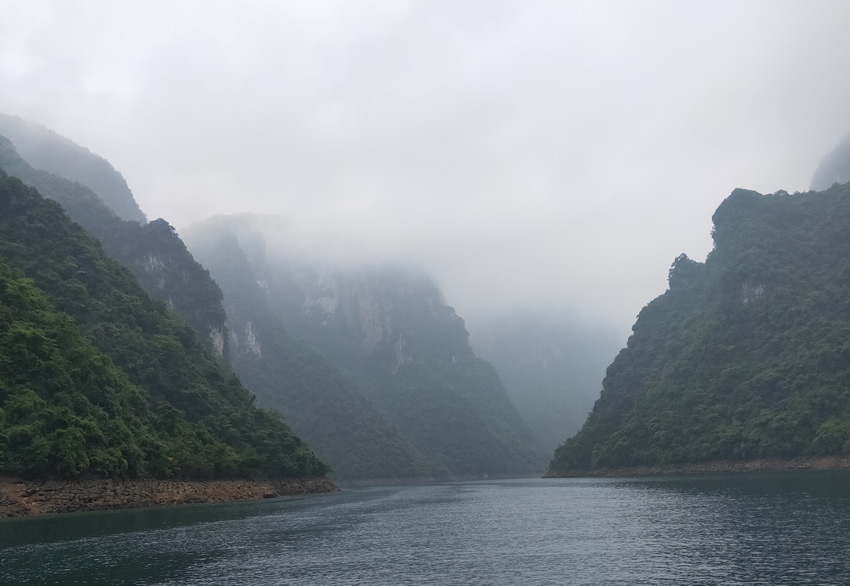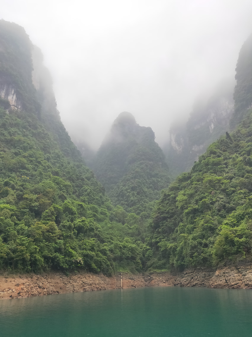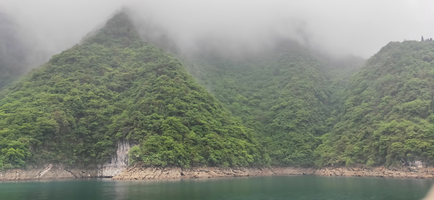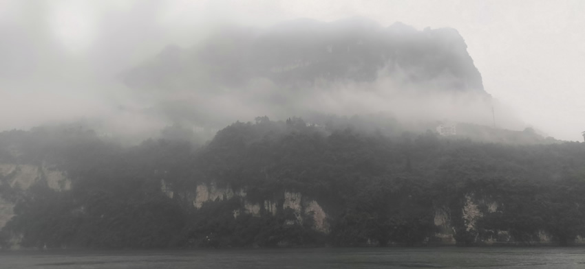 當天清晨我們從武昌站出發,兩個小時便到了宜昌東站,接著乘坐旅游巴士前往胡金灘碼頭,一路上途經西陵峽,透過車窗提前感受到了大自然的壯觀。臨近景區的那條上山路讓我想起了恩施大峽谷,沿山路上也是有很多土家餐館,不過山路沒有大峽谷崎嶇。很快我們就進入了三峽人家風景區,它位于長江三峽西陵峽段,地處三峽大壩和葛洲壩之間,橫跨燈影峽兩岸,以其“一肩挑兩壩,一江攜兩溪”的獨特地理位置優勢,成為了長江三峽黃金旅游線上的一顆璀璨明珠。大家滿懷期待的心情登上渡船,終于真實地體會到了三峽人家的雄渾之美,站在渡船二樓,清風撲面而來,讓人心曠神怡。雖然那天烏云密布,陰霧迷漫,但多了一絲蒼涼之美、陰柔之美。