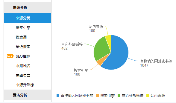 在來源分析中,主要分為搜索引擎、搜索詞、最近搜索、來路域名、來路頁面等。