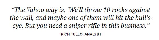 雅虎的改革就像是隨機拋石頭,也許總有一塊能正中靶心。然而在商業中,它需要的是精準狙擊槍一樣的改革。