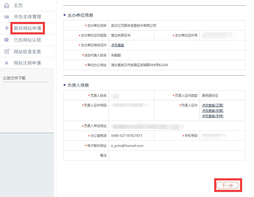 公安機關備案流程如下(填寫貴公司的主體信息和網站信息)