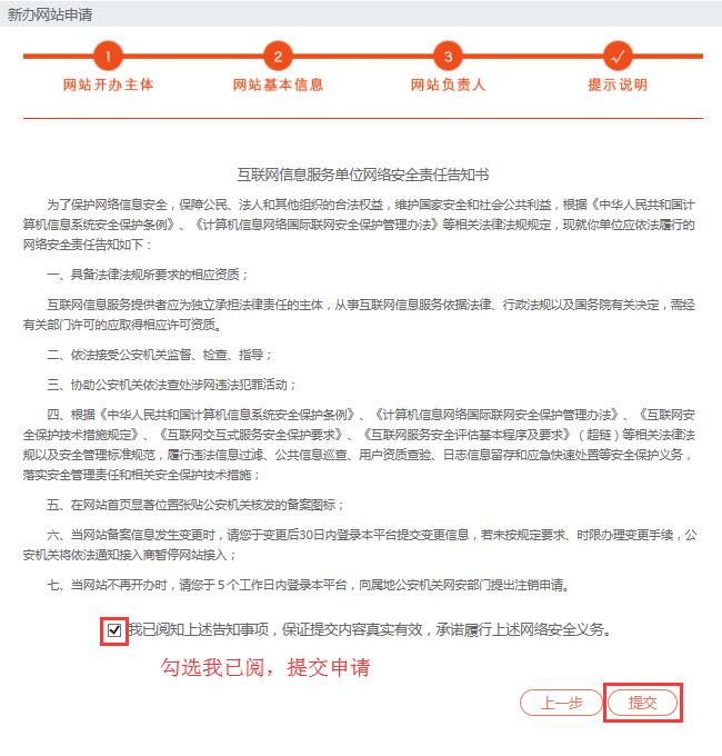 最后一步,仔細閱讀安全責任告知書并勾選我已閱,然后提交。