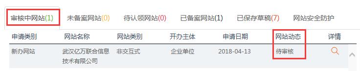 四、提交申請后,可在主頁里查看審核中的網站動態,審核成功后,會顯示公安廳備案號