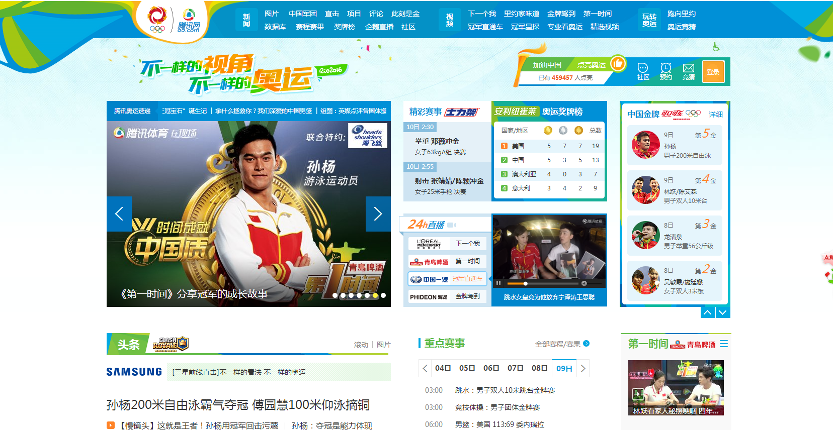 整體而言,我更看好騰訊和新浪兩大門戶的奧運報道,這兩家的奧運戰略本身就野心更大,投入更多,特色更鮮明,更重要的是,體育本身就是這兩家押注的重點:新浪是做足球報道起家,之前多年是NBA官方合作伙伴,多次報道奧運會等盛會,體育是其強勢頻道;騰訊在體育業務上也押下重注,體育是騰訊長期內容戰略的核心組成部分,正是因為此其在會不惜重金砸在里約奧運會上。